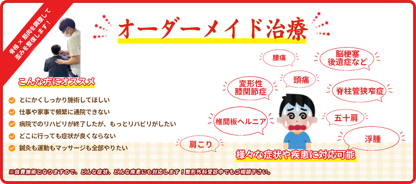 肩こり・腰痛・五十肩・膝痛・坐骨神経痛など、筋肉や関節の痛み・コリを緩和。