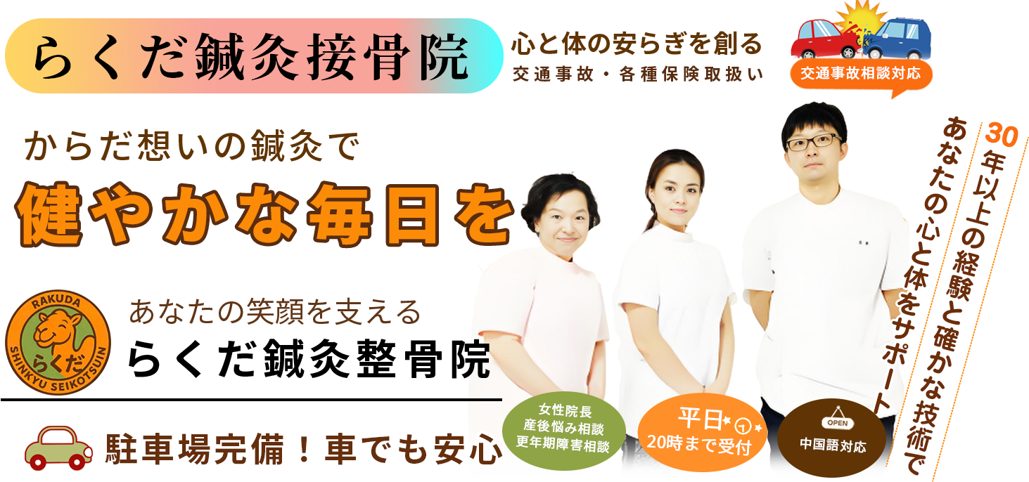 交通事故後の後遺症・むち打ちなどでお困りの方は、らくだ鍼灸整骨院