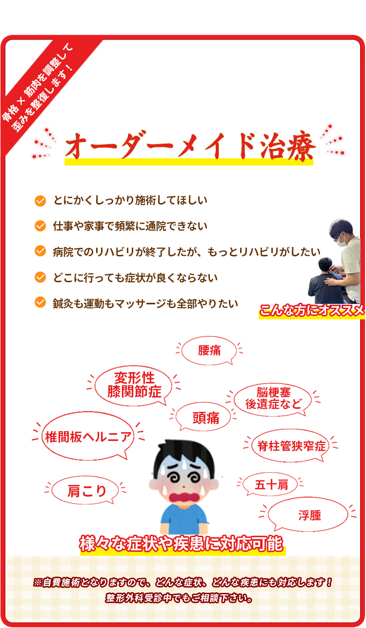 肩こり・腰痛・五十肩・膝痛・坐骨神経痛など、筋肉や関節の痛み・コリを緩和。